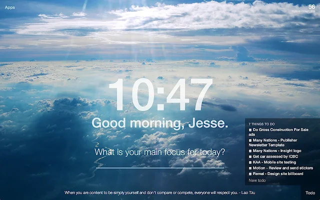 Abaixo da pergunta “What is your main focus for today?”, você deverá informar ao software “o seu principal foco para o dia de hoje”. Note que, localizada no canto inferior direito de Momentum, uma caixa sob o nome de “Todo” será também mostrada. Acesse-a, defina agora suas tarefas para o correr do dia e pressione por fim a tecla “Enter”.